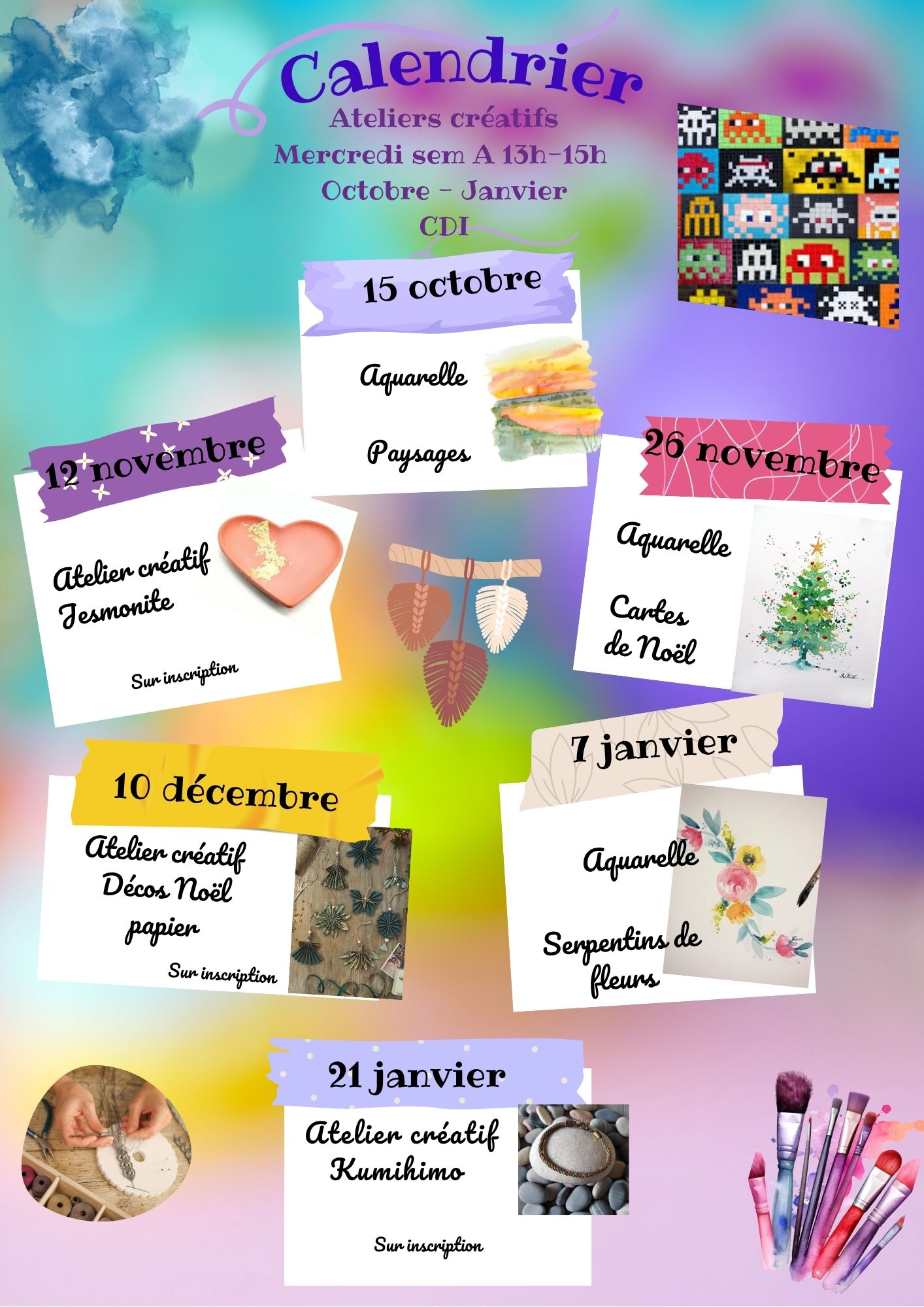 Des ateliers créatifs sont proposés aux élèves intéressés les mercredis après-midis en semaine A au CDI.