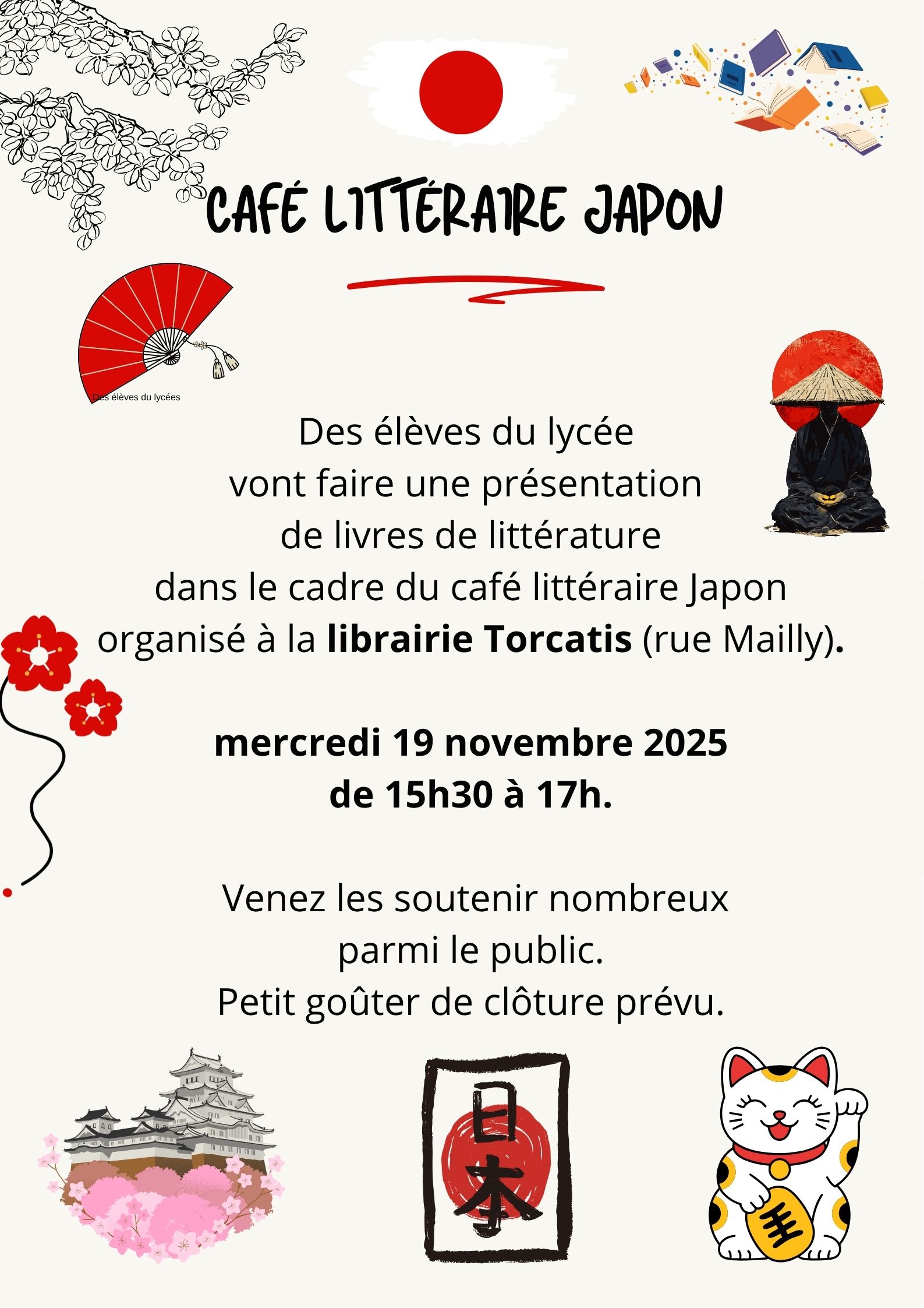 Des élèves du lycée feront une présentation de livres de littérature dans le cadre du café littéraire Japon organisé à la librairie Torcatis (rue Mailly)
