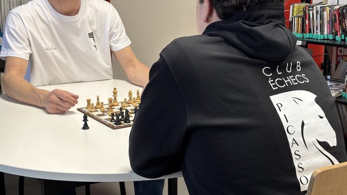 Une collaboration réussie au service d’une ligne de vêtements aux nouvelles armoiries du club échecs ! Il est toujours possible d’acheter tee-shirts (11 €), sweats noir ou blanc (25.50 €), sweats zippés noir ou blanc (32.50 €) en s’adressant au CDI.